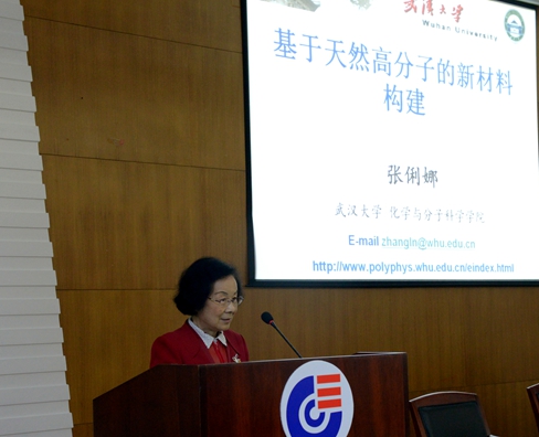 11月4日,应我实验室谭蔚泓主任邀请,武汉大学张俐娜教授来我室讲学,作了题为“基于天然高分子的新材料的构建”学术报告,受到广大师生的热烈欢迎。之后,张俐娜教授参观了实验室,与我室部分年轻教师进行了深入交流。此次讲学是我室“化学生物前沿论坛”系列讲座的第二十六讲,俞汝勤教授主持。
